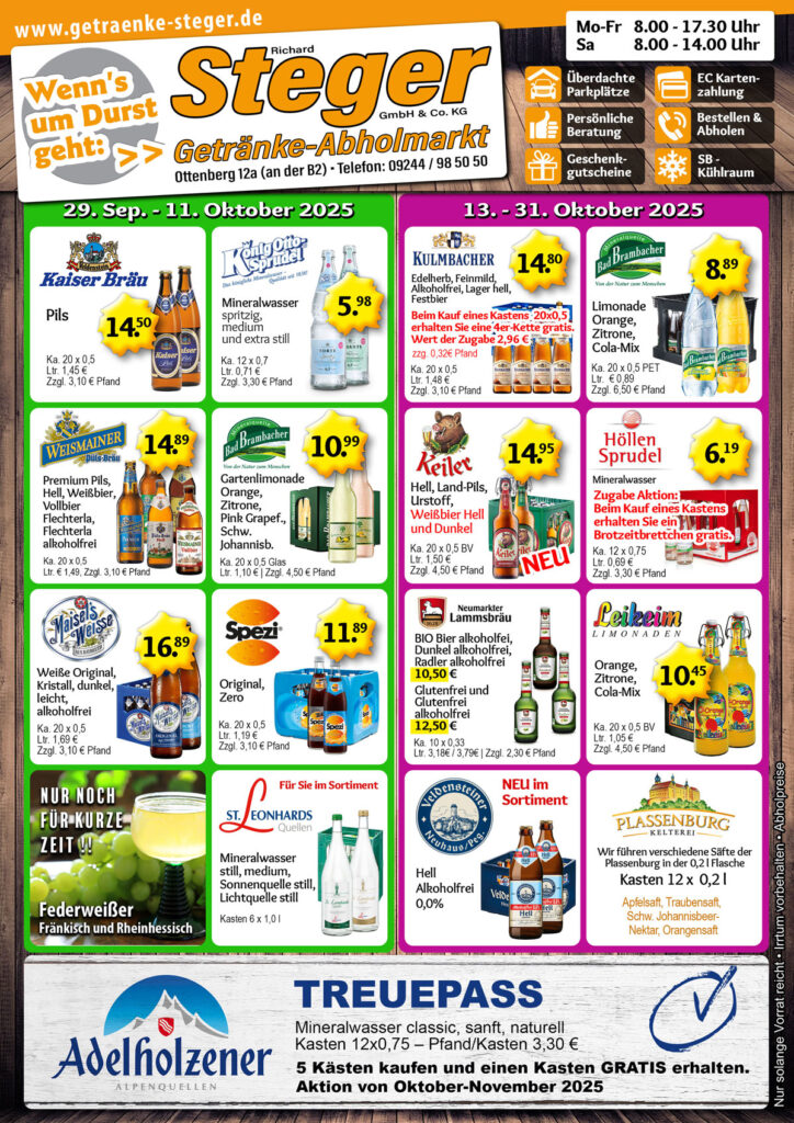 Werfen sie einen Blick auf unsere aktuellen Angebote. Zusätzlich bieten wir ihnen ein großes Sortiment an fränkischen Bierspezialitäten, Weine und alkoholfreie Getränke. Neben der Großen Auswahl und persönlichen Beratung bieten wir Ihnen auch viele Saisonartikel und Geschenkideen wie: Präsentkörbe, oder Geschenkgutscheine.